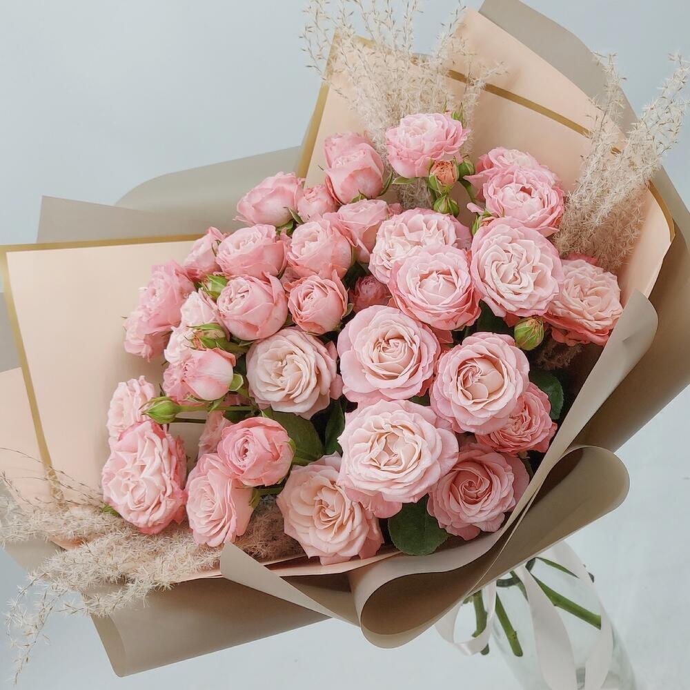 Нежнейшие, ажурные кустовые розы Бомбастик в стильном оформлении. Такой букет всегда уместен и подойдёт для любого повода: День Рождения, именины, годовщина свадьбы, рождение ребенка, 8 марта, День Святого Валентина, выпускной и т.д. Можно вручить маме, сестре, подруге, коллеге, учителю, любимой.