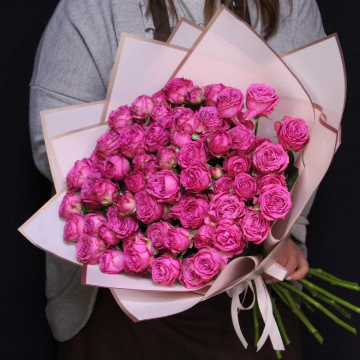 роза кустовая пионовидная классик сенсейшн – 15 шт.Пленка дизайнерская – 3 шт.Лента атласная – 1 шт.