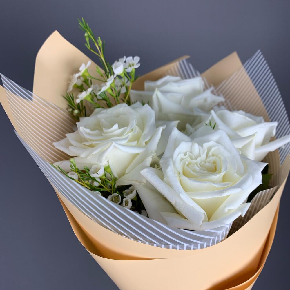 Моно из 5 белых роз