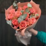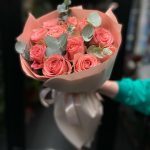 Монобукет из роз с эвкалиптом