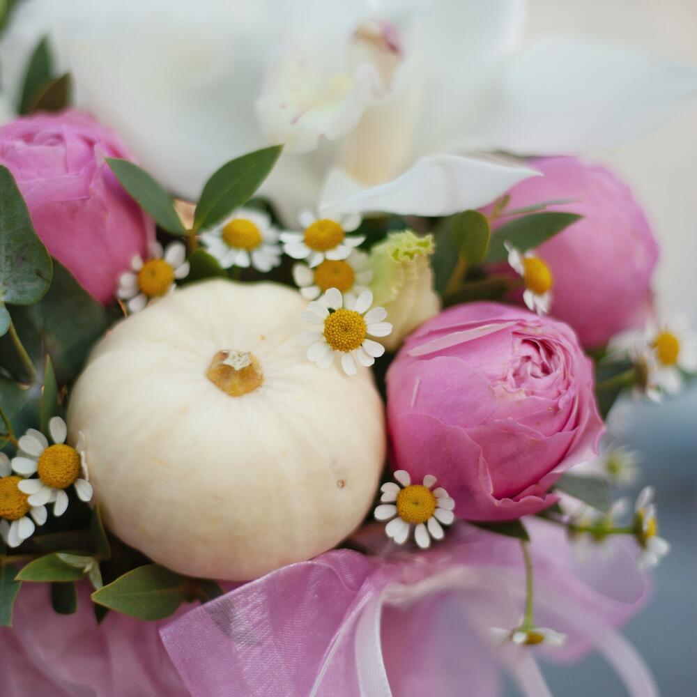 Альстромерии, Кустовые розы, Лизиантусы, Пионовидные розы, Розы, Ромашки