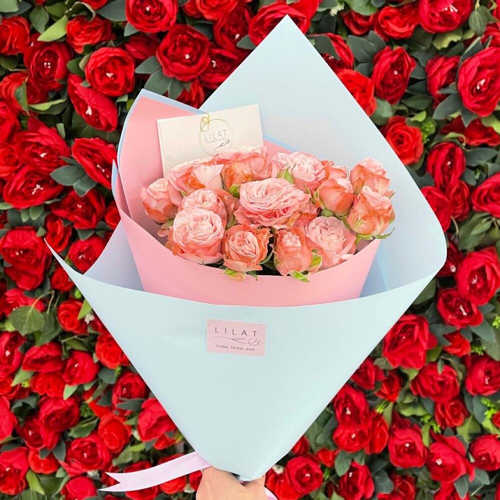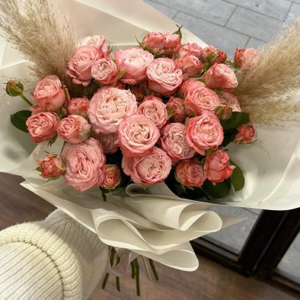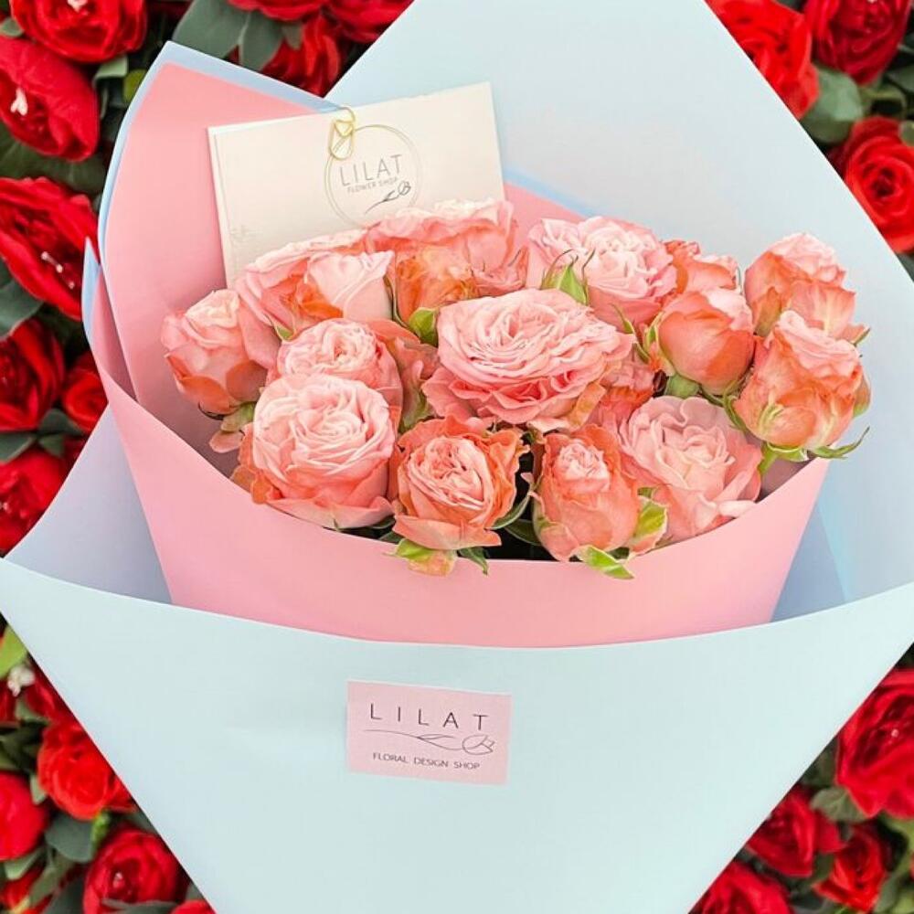 Пионовидная кустовая роза – 7 шт. Упаковка дизайнерская – 1 шт. Открыточка с вашими пожеланиями – 1 шт. инструкция по уходу за цветами – 1 шт.