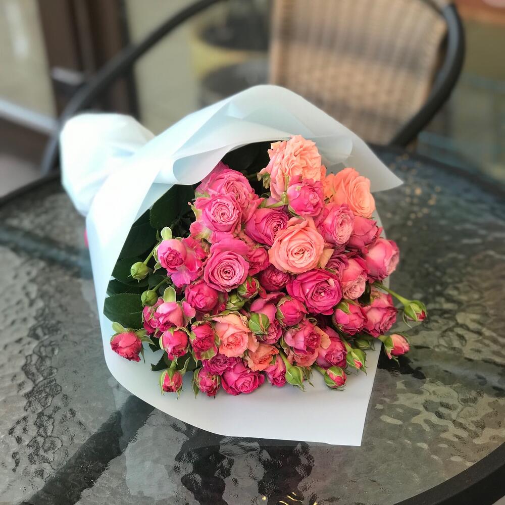 Нежный букет кустовых роз Бомбастик