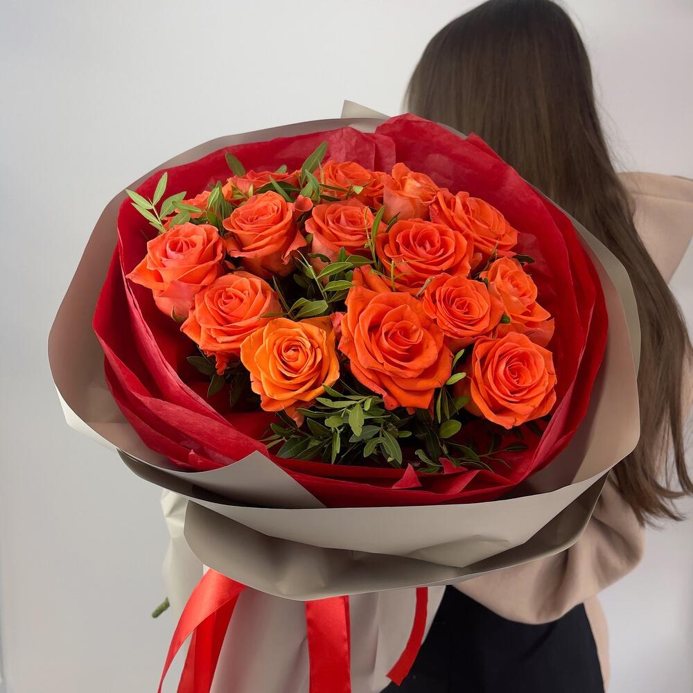 Оранжевое солнце - Букет с пионовидными розами и колючками