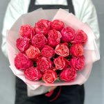 Лента атласная – 1 шт.Упаковка дизайнерская – 4 шт.bubble gum роза – 19 шт.