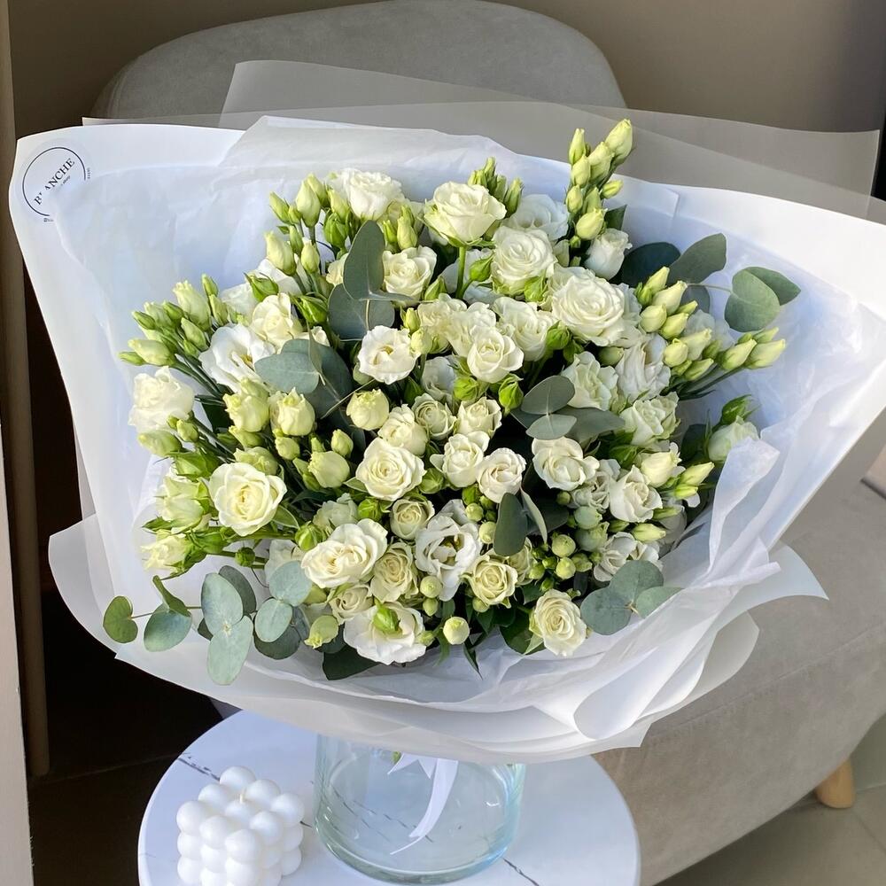 Гвоздики, Лизиантусы, Розы, Тюльпаны