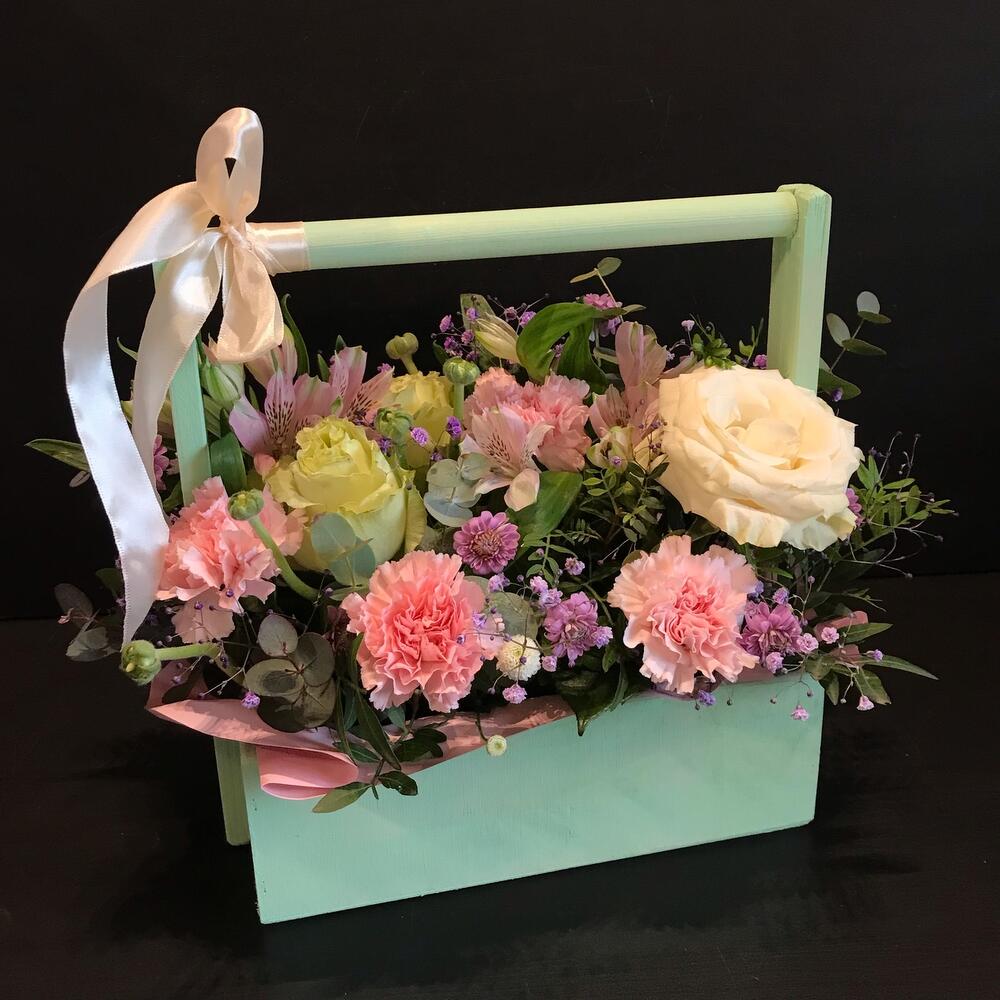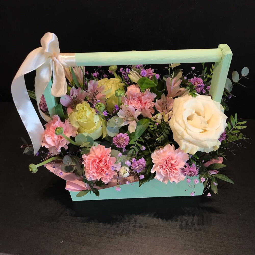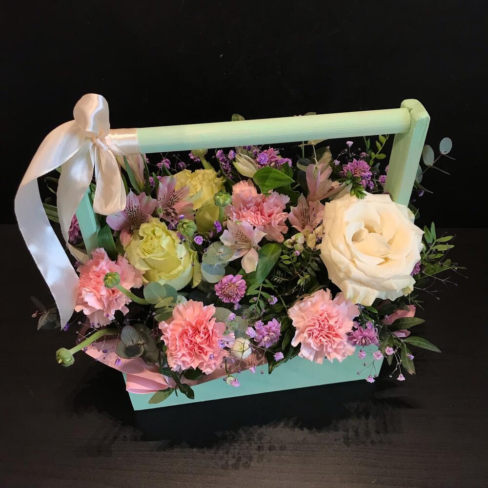 Гвоздики, Лизиантусы, Розы, Тюльпаны