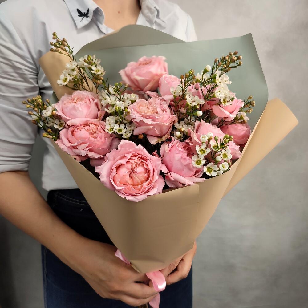 Гвоздики, Кустовые розы, Лизиантусы, Пионовидные розы, Розы