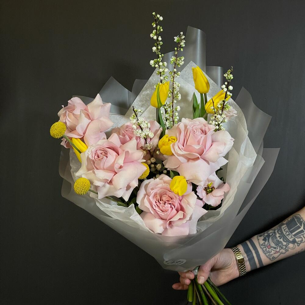 Альстромерии, Кустовые розы, Лизиантусы, Пионовидные розы, Розы, Ромашки
