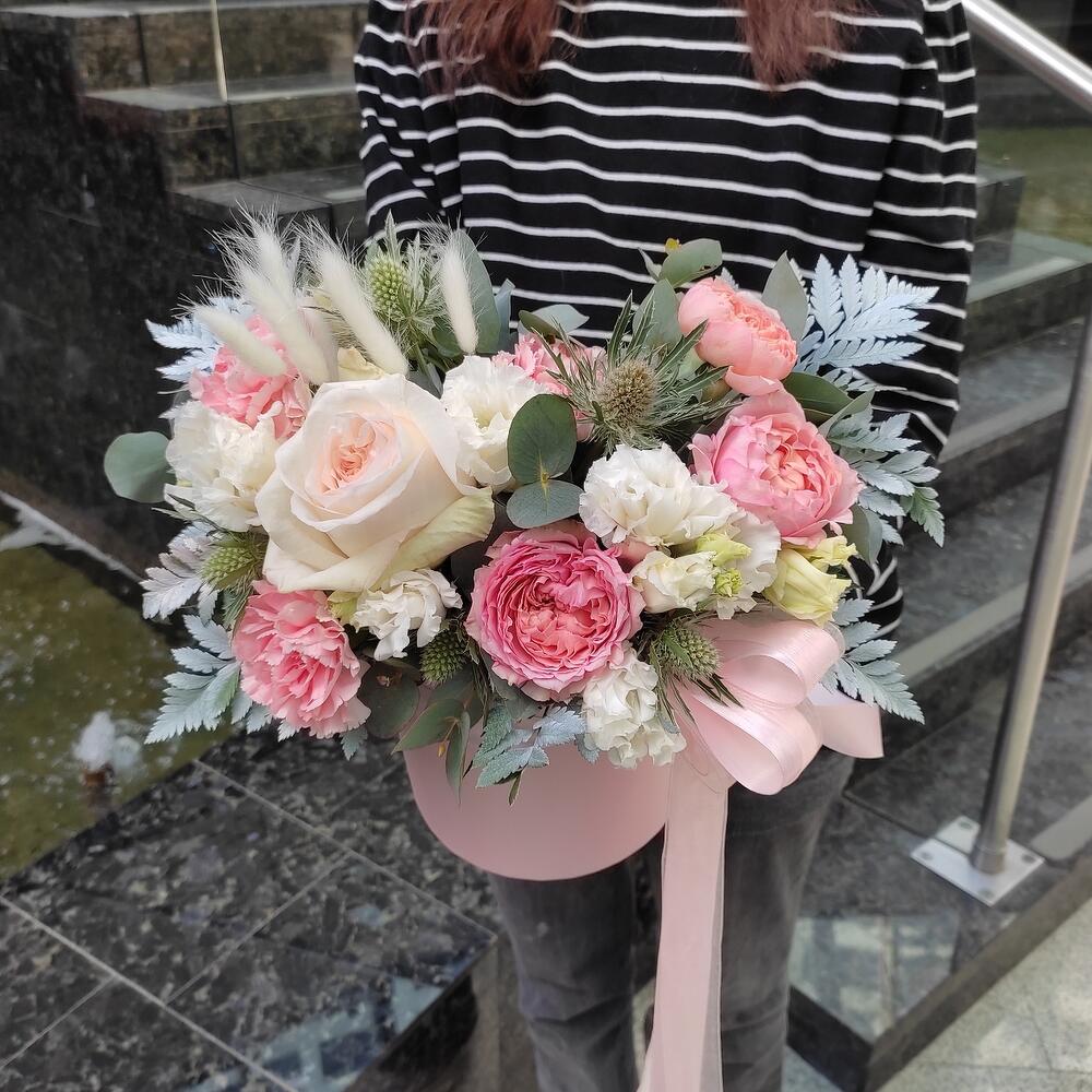 Цветы в коробке с пионовидный розой