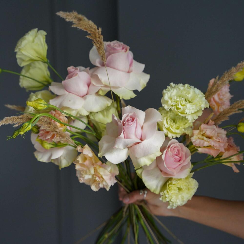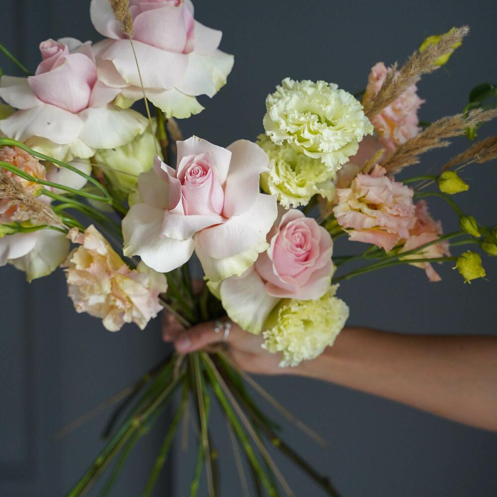Альстромерии, Кустовые розы, Лизиантусы, Пионовидные розы, Розы, Ромашки