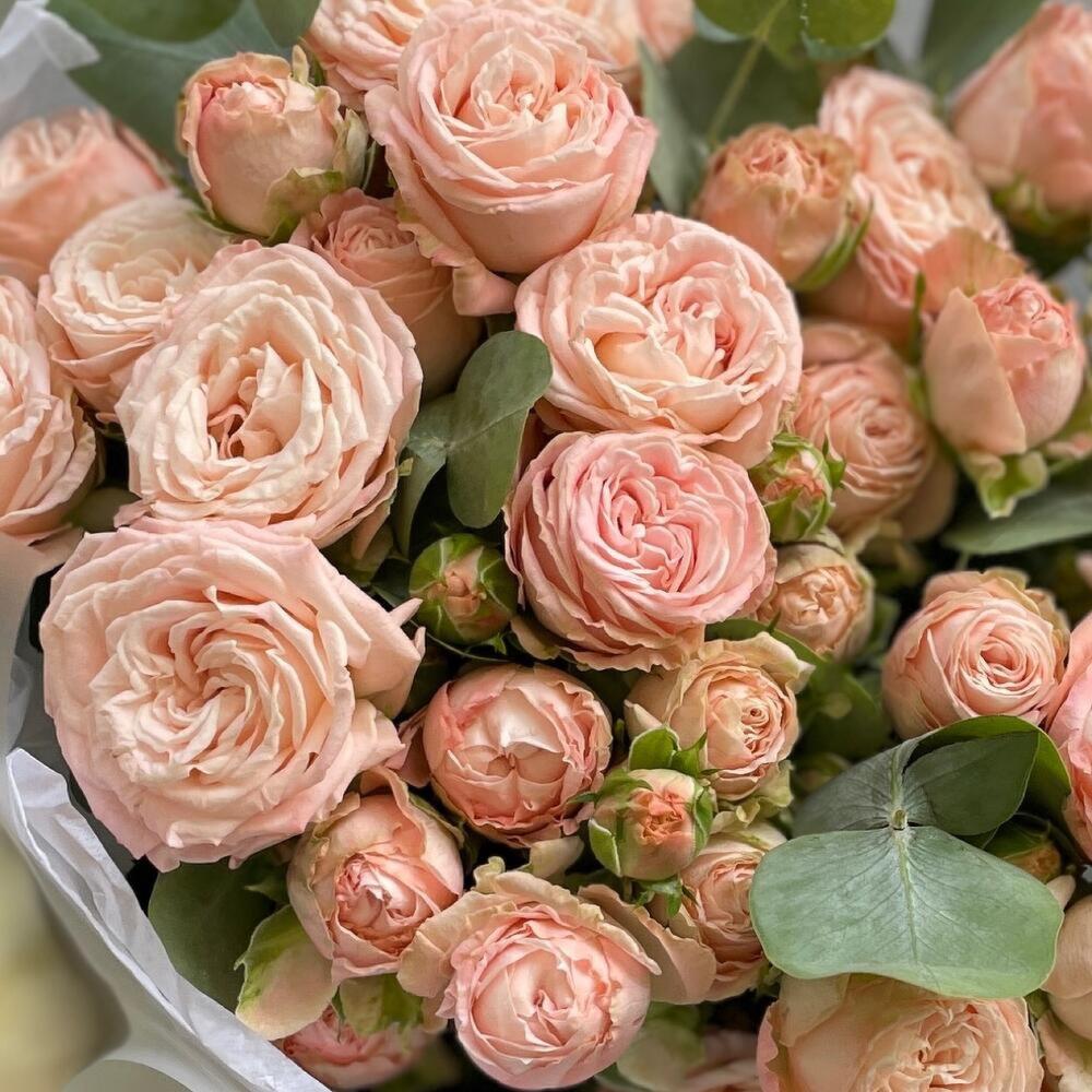 Альстромерии, Гвоздики, Кустовые розы, Лизиантусы, Розы, Хризантемы