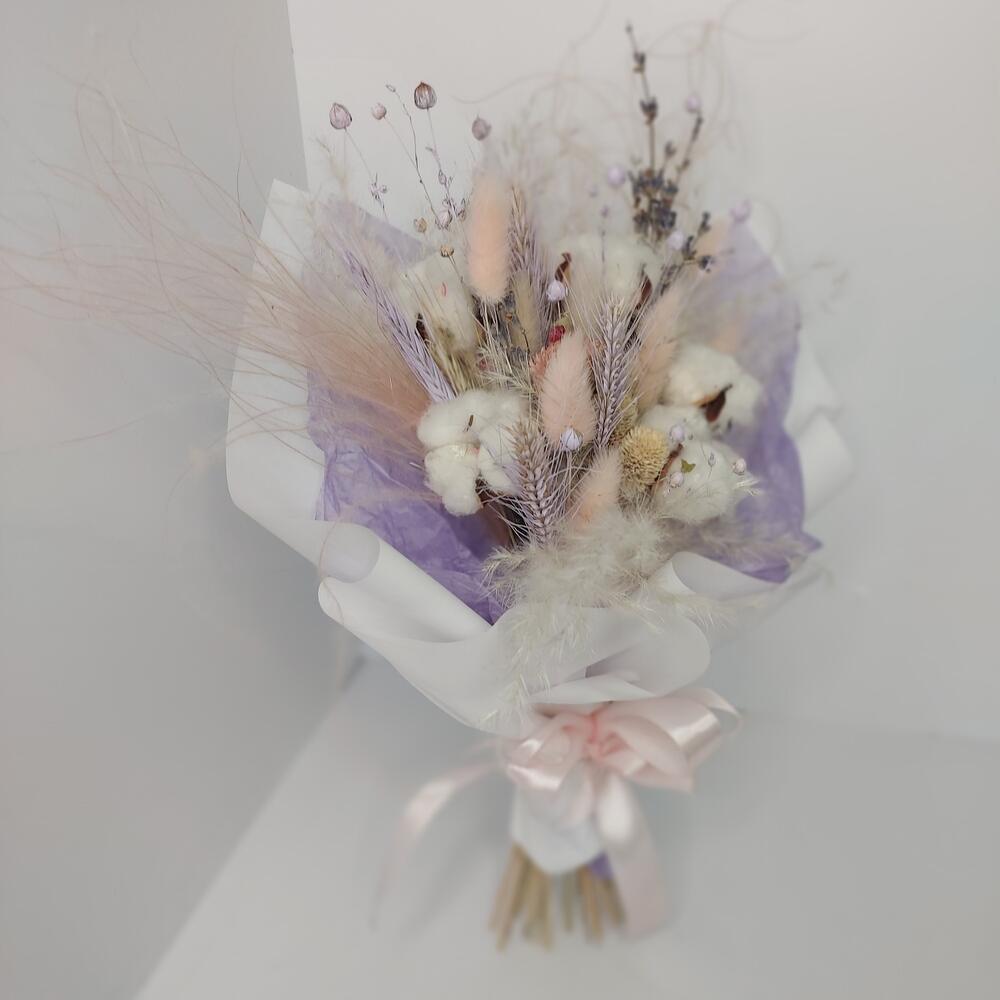Хлопок – 4 шт.Лагурус – 9 шт.Ковыль – 2 шт.кортадерия – 4 шт.прочие сухоцветы – 15 шт.