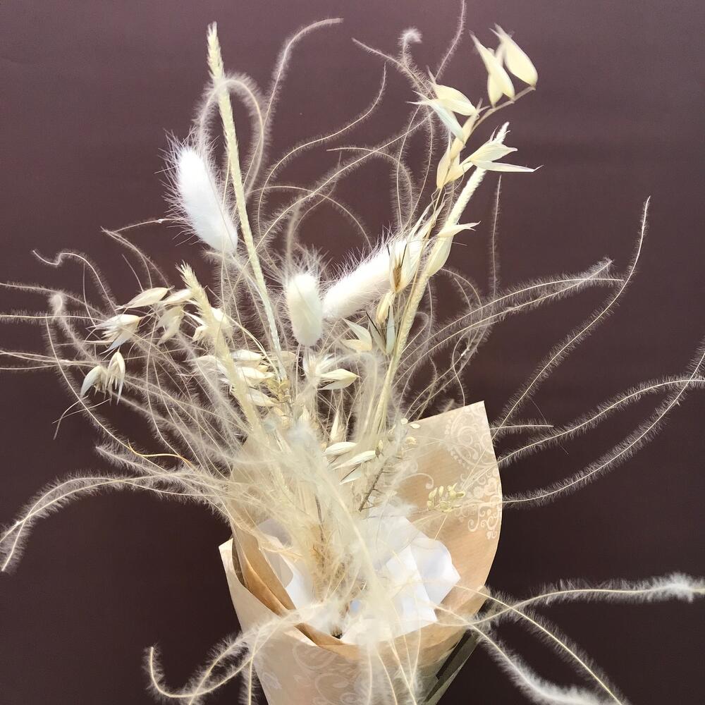 Лагурус – 3 шт.Ковыль – 3 шт.Овес – 2 шт.сухоцветы декоративные микс – 1 шт.
