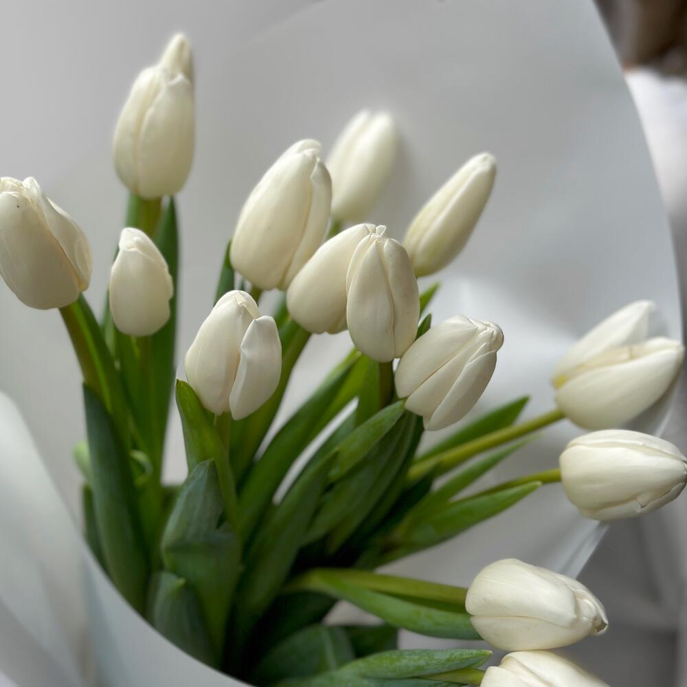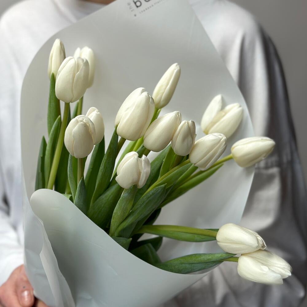 Монобукет из 15 классических белых тюльпанов