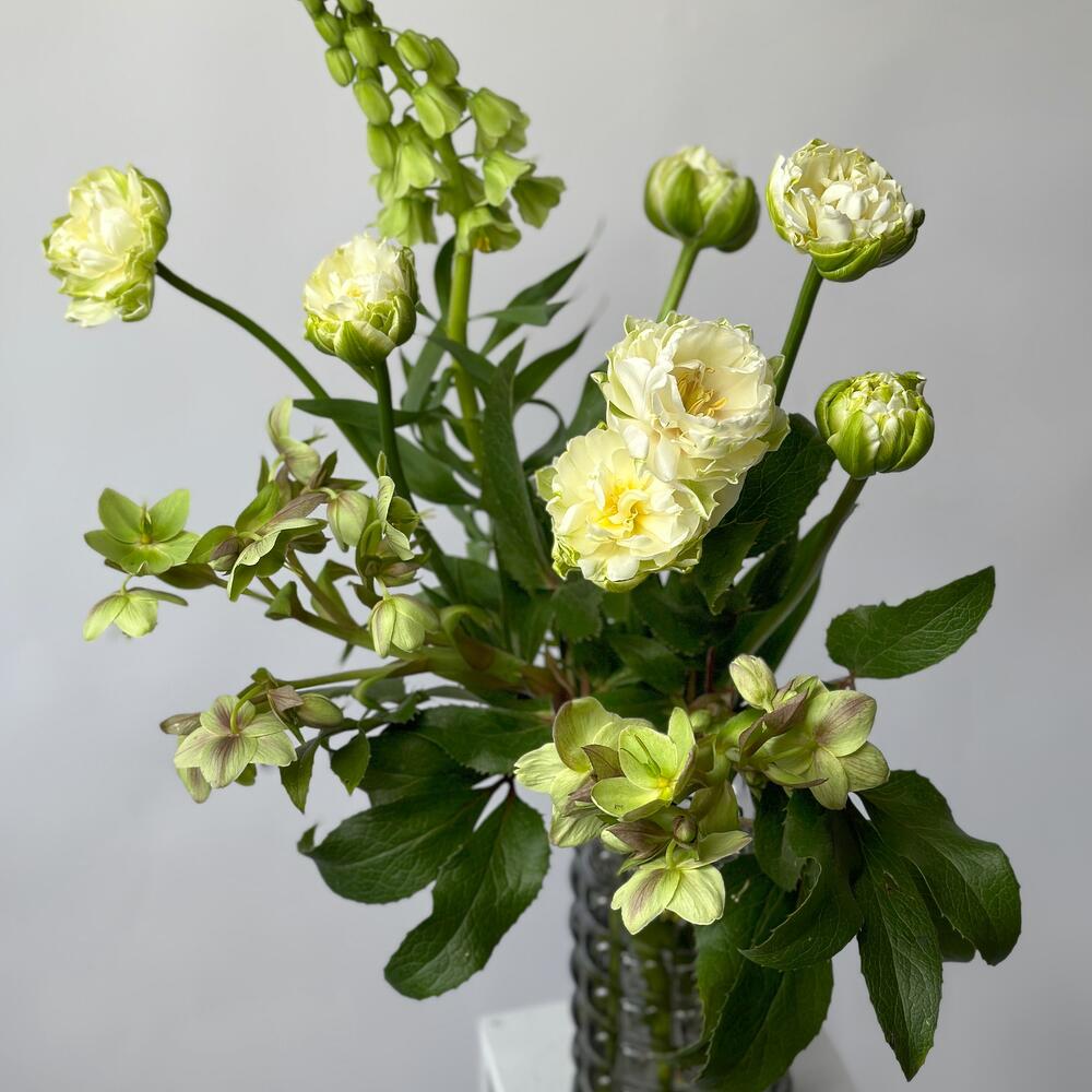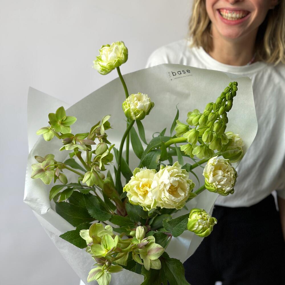 Небольшой зеленый букет из сезонных цветов